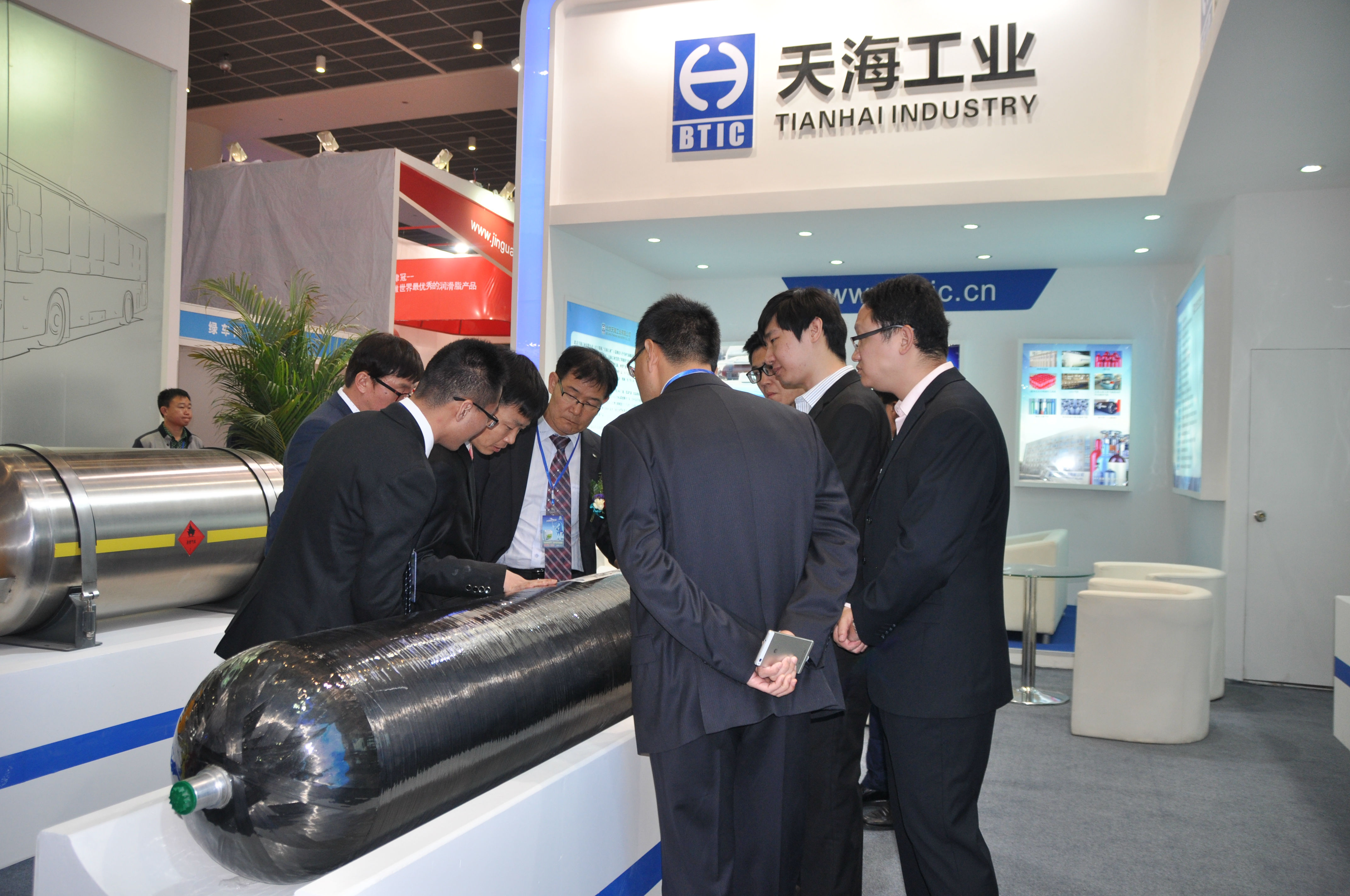 天海工業(yè)秉承高效、環(huán)保、節(jié)能的理念,致力于推動(dòng)清潔能源汽車燃料系統(tǒng)的發(fā)展,提供天然氣儲(chǔ)運(yùn)領(lǐng)域全套解決方案。此次展會(huì),不僅展出了公司全新研制的車用鋁內(nèi)膽碳纖維全纏繞復(fù)合氣瓶(CNG-3型瓶)、還有具有國(guó)內(nèi)先進(jìn)技術(shù)的車用SI型LNG氣瓶、更有可為客戶提供全面的LNG氣瓶定檢站/維修服務(wù)站解決方案,吸引了天津公交、濟(jì)南公交、中通客車、青年客車等眾多客戶及廠商前來溝通洽談。天海工業(yè)豐富的產(chǎn)品種類和優(yōu)質(zhì)的服務(wù)得到客戶的廣泛認(rèn)可,體現(xiàn)了天海工業(yè)在天然氣產(chǎn)業(yè)鏈中豐富的裝備制造能力以及強(qiáng)大的品牌影響力。