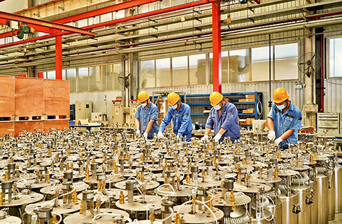 在天海工業(yè)明暉車間里,一派繁忙景象,工人師傅們正在對液氧呼吸器的零部件進(jìn)行組裝。據(jù)介紹,此呼吸器采用高真空多層絕熱設(shè)計,與常規(guī)工業(yè)液氧氣瓶相比,具有更好的絕熱性能,液氧靜態(tài)存儲時間可達(dá)到30天以上。