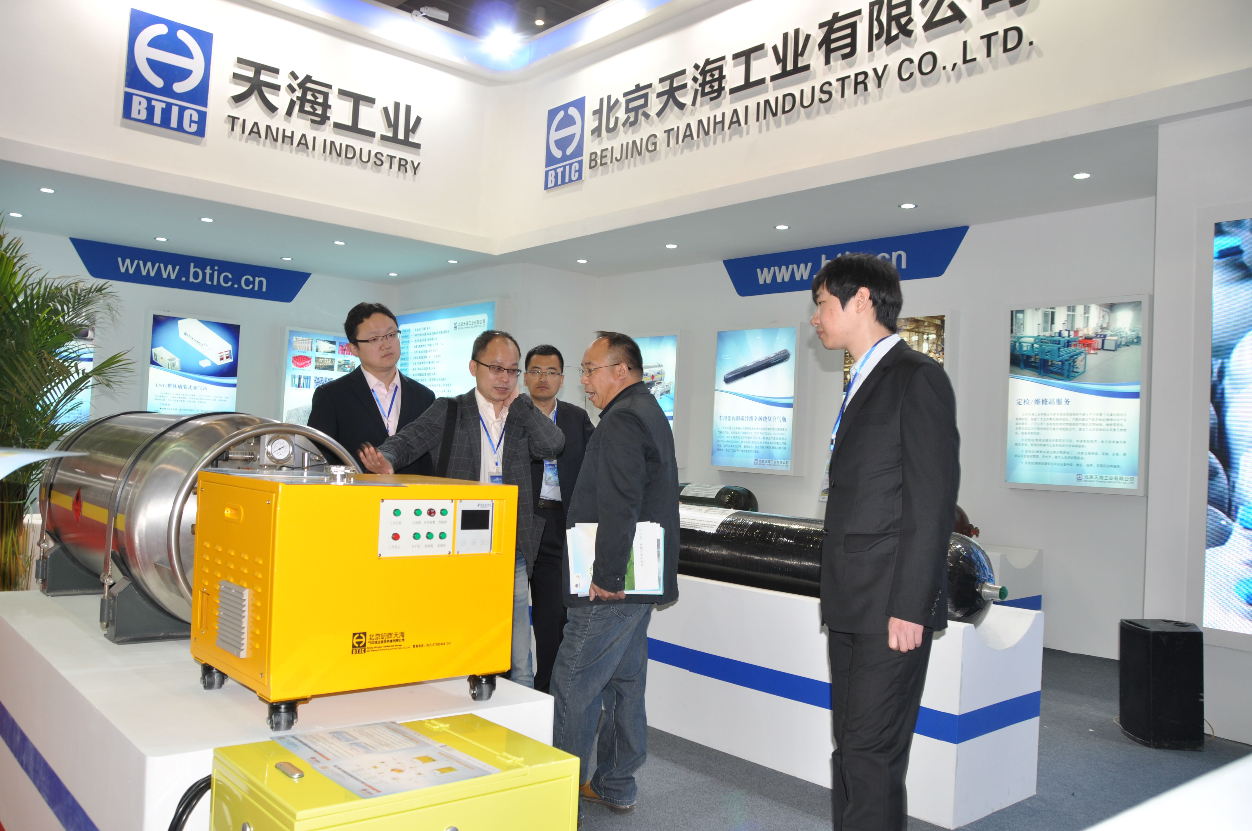 天海工業(yè)秉承高效、環(huán)保、節(jié)能的理念,致力于推動(dòng)清潔能源汽車燃料系統(tǒng)的發(fā)展,提供天然氣儲(chǔ)運(yùn)領(lǐng)域全套解決方案。此次展會(huì),不僅展出了公司全新研制的車用鋁內(nèi)膽碳纖維全纏繞復(fù)合氣瓶(CNG-3型瓶)、還有具有國(guó)內(nèi)先進(jìn)技術(shù)的車用SI型LNG氣瓶、更有可為客戶提供全面的LNG氣瓶定檢站/維修服務(wù)站解決方案,吸引了天津公交、濟(jì)南公交、中通客車、青年客車等眾多客戶及廠商前來溝通洽談。天海工業(yè)豐富的產(chǎn)品種類和優(yōu)質(zhì)的服務(wù)得到客戶的廣泛認(rèn)可,體現(xiàn)了天海工業(yè)在天然氣產(chǎn)業(yè)鏈中豐富的裝備制造能力以及強(qiáng)大的品牌影響力。